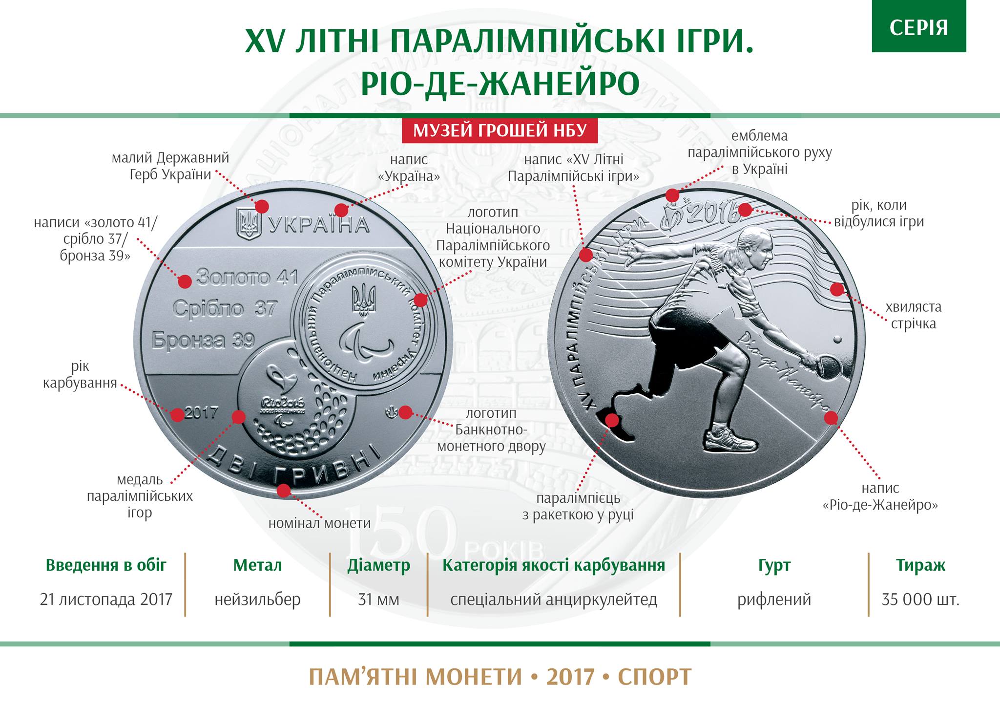 XV Літні Паралімпійські ігри. Ріо-де-Жанейро | 35 | CuNiZn |