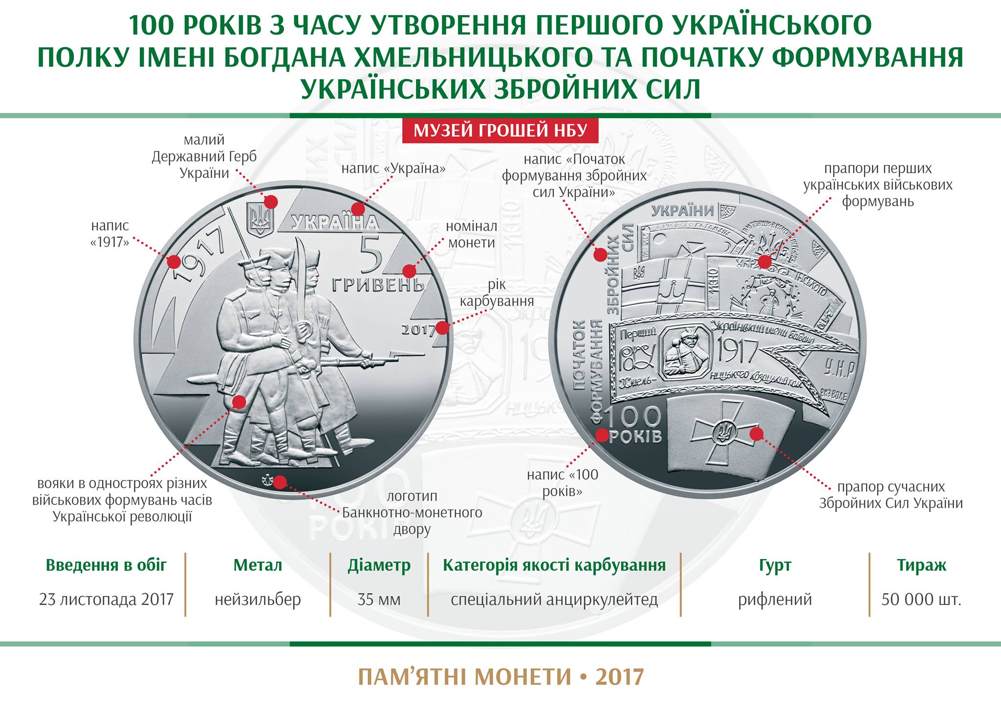 100 років з часу утворення Першого українського полку імені Богдана Хмельницького та початку формування збройних сил України | 50 | CuNiZn |