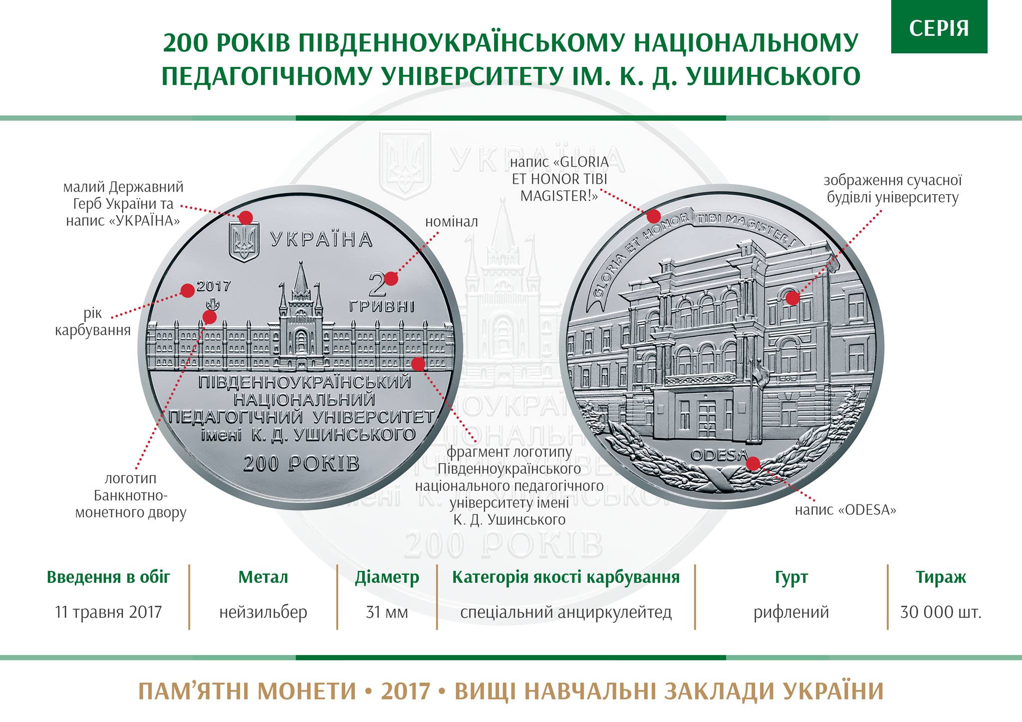 200 років Південноукраїнському національному педагогічному університету ім. К. Д. Ушинського | 30 | CuNiZn |