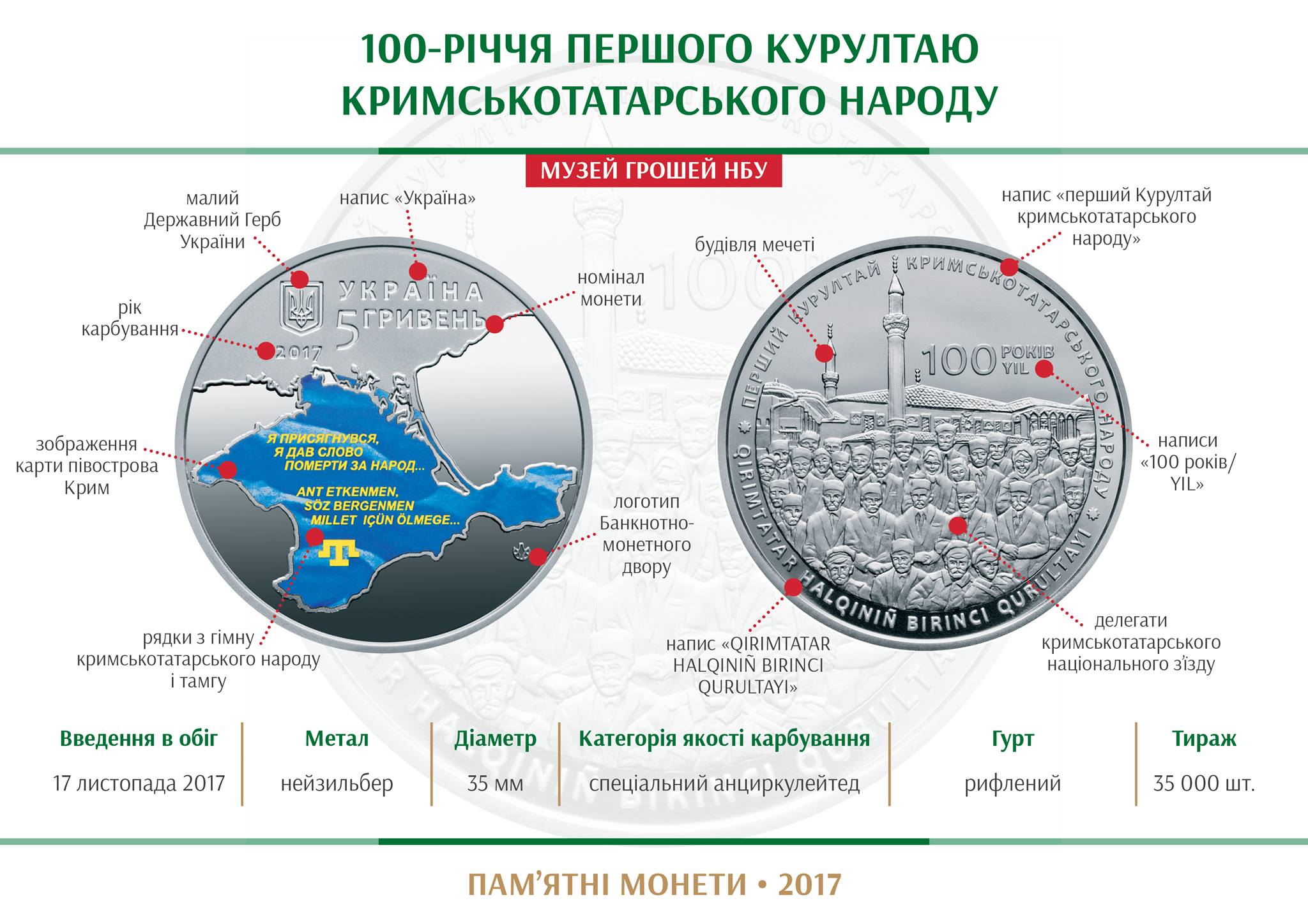 100-річчя першого Курултаю кримськотатарського народу | 35 | CuNiZn |