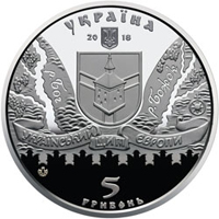 На аверсі монети розміщено: угорі напис - УКРАЇНА, під яким малий Державний Герб України, по обидва боки якого цифри 20 та 18, у центрі композицію: щит із зображенням вежі, по обидва боки якого стилізована карта місцевості із написами: р. Бог (ліворуч), р. Божок (праворуч) - давнє написання назв річок, унизу на стрічці напис - УКРАЇНСЬКИЙ ЩИТ ЄВРОПИ; унизу на тлі абрису зубців палацу номінал - 5/ГРИВЕНЬ; ліворуч логотип Банкнотно-монетного двору Національного банку України.