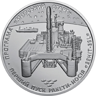На реверсі монети на дзеркальному тлі розміщено стилізоване зображення плавучої платформи, ліворуч від якої – корабель; по колу написи: ПРОГРАМА «МОРСЬКИЙ СТАРТ» (угорі) та ПЕРШИЙ ПУСК РАКЕТИ-НОСІЯ «ЗЕНІТ-3SL» (унизу).
