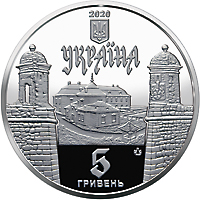 На аверсі монети розміщено: угорі – малий Державний Герб України, під яким напис УКРАЇНА; над гербом зазначено рік карбування монет 2020; праворуч і ліворуч на монеті зображено вежі, крізь які видно стилізовану панораму замку; унизу зазначено номінал – 5/ГРИВЕНЬ; унизу праворуч ? логотип Банкнотно-монетного двору Національного банку України.