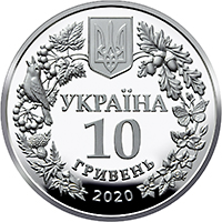 На аверсі монети в обрамленні вінка, утвореного із зображень окремих видів флори і фауни, розміщено малий Державний Герб України та написи: УКРАЇНА/10/ГРИВЕНЬ/2020.