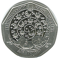 На аверсі монети розміщено: угорі малий Державний Герб України, написи: угорі півколом - НАЦІОНАЛЬНИЙ БАНК УКРАЇНИ, унизу - номінал ДВІ ГРИВНІ та стилізовану композицію - на тлі зіркового неба зображення знаків зодіаку, під якими на місяці солодко спить дитина; рік карбування монети 2014 та логотип Монетного двору Національного банку України (праворуч), позначення металу, проби та маси Ag 925/7,78 (ліворуч).