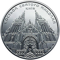 На реверсі монети зображено будівлю костьолу та розміщено написи: КОСТЬОЛ СВЯТОГО МИКОЛАЯ (півколом угорі) КИЇВ (над будівлею).