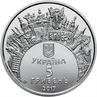 На аверсі монети розміщено: у центрі на дзеркальному тлі - малий Державний Герб України, під яким напис УКРАЇНА, номінал 5/ГРИВЕНЬ, рік карбування монети ? 2017, логотип Банкнотно-монетного двору Національного банку України (унизу ліворуч); угорі півколом стилізовану композицію: панорама міста, на якій зображено Архістратига Михаїла та напис КИЇВ.