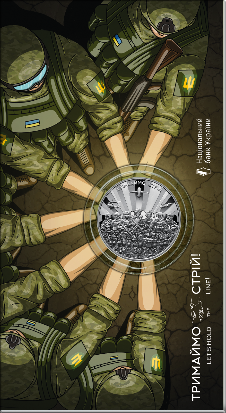 Пам’ятна монета “Тримаймо стрій!” присвячена незламності українських військових. Це заклик до єднання на всіх найгарячіших ділянках протистояння, де триває боротьба України. Ця пам’ятна монета символізує єдність, міцність та мужність наших захисників, які зі зброєю в руках вдень і вночі стоять на захисті нашої свободи. Завдяки відвазі українських оборонців наша країна долає всі випробування, і віра в перемогу залишається непорушною.