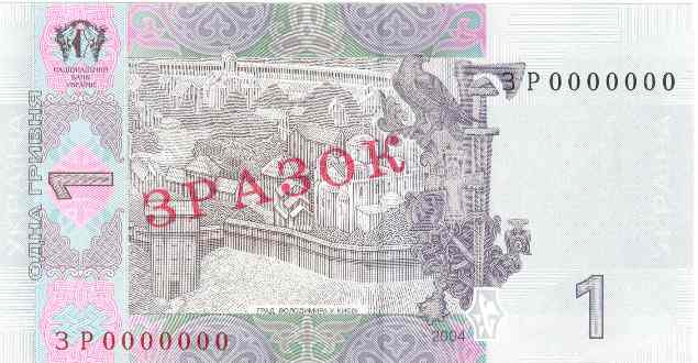 Банкнота номіналом 1 гривня 2004 року виготовлення.